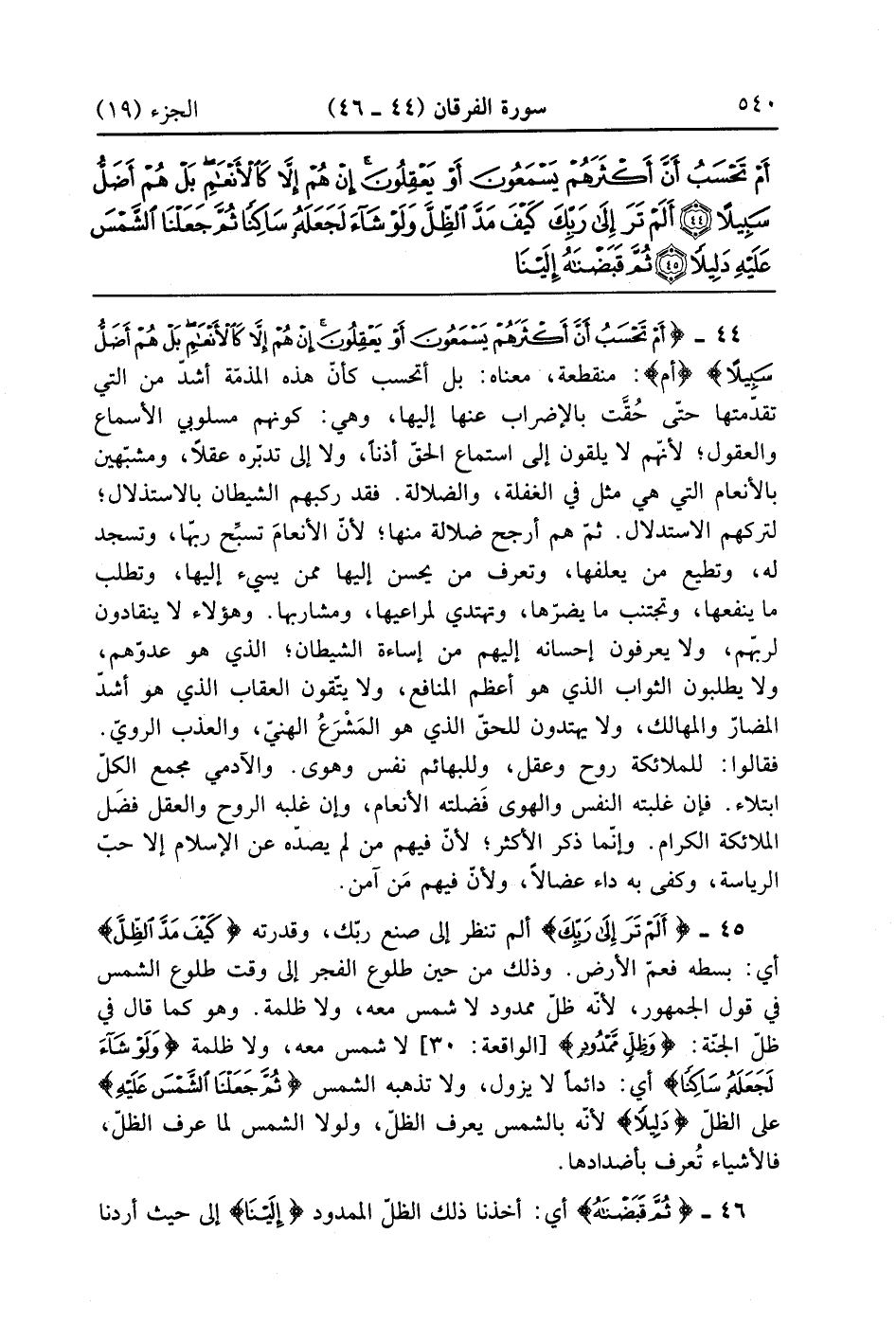 أَلَمْ تَرَ إِلَى رَبِّكَ كَيْفَ مَدَّ الظِّلَّ وَلَوْ شَاءَ لَجَعَلَهُ سَاكِنًا ثُمَّ جَعَلْنَا الشَّمْسَ عَلَيْهِ دَلِيلًا (45)