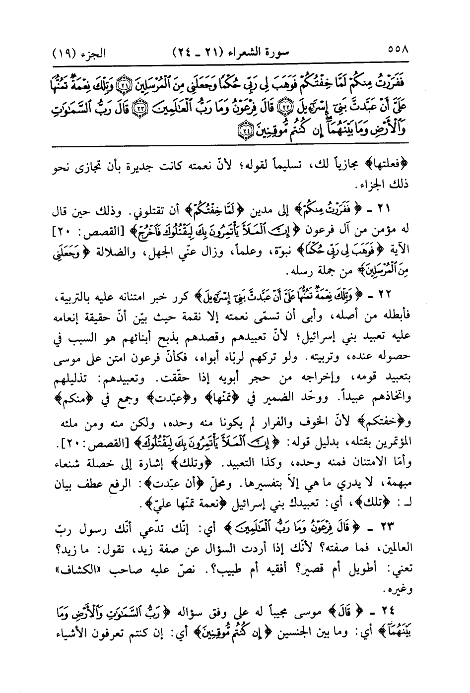 فَفَرَرْتُ مِنْكُمْ لَمَّا خِفْتُكُمْ فَوَهَبَ لِي رَبِّي حُكْمًا وَجَعَلَنِي مِنَ الْمُرْسَلِينَ (21)