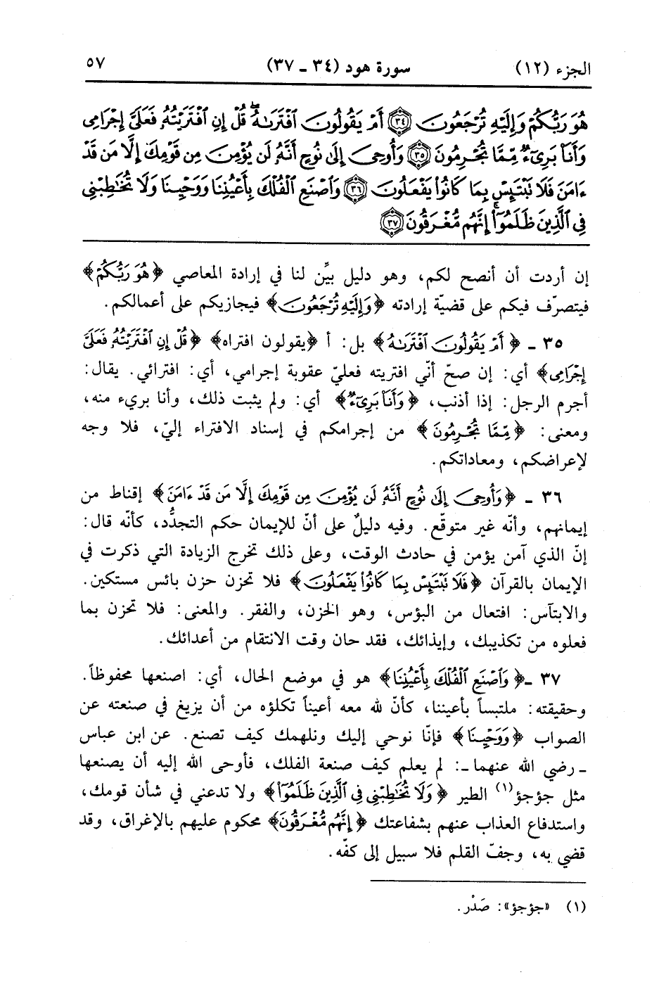 وَاصْنَعِ الْفُلْكَ بِأَعْيُنِنَا وَوَحْيِنَا وَلَا تُخَاطِبْنِي فِي الَّذِينَ ظَلَمُوا إِنَّهُمْ مُغْرَقُونَ (37)