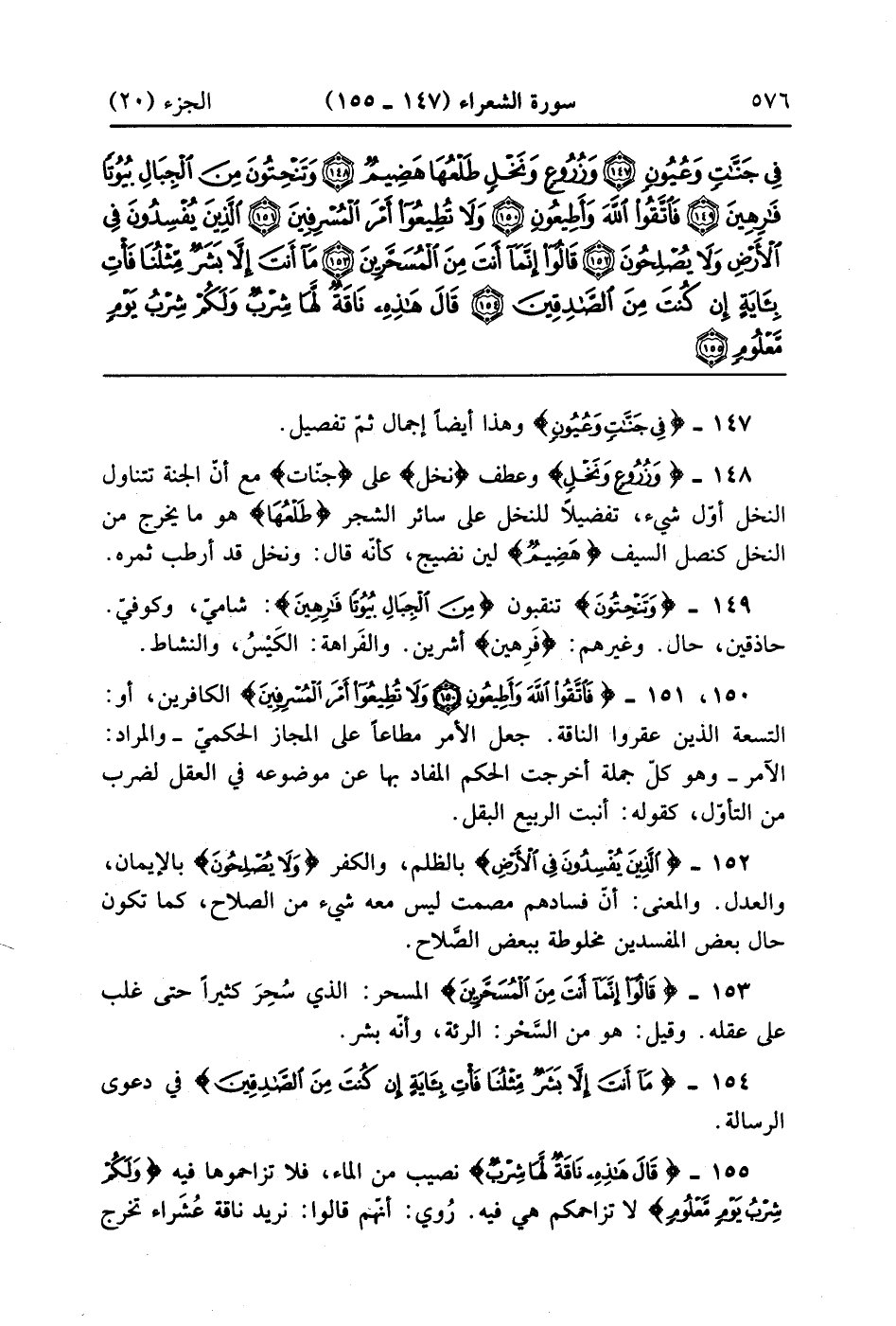 قَالَ هَذِهِ نَاقَةٌ لَهَا شِرْبٌ وَلَكُمْ شِرْبُ يَوْمٍ مَعْلُومٍ (155)