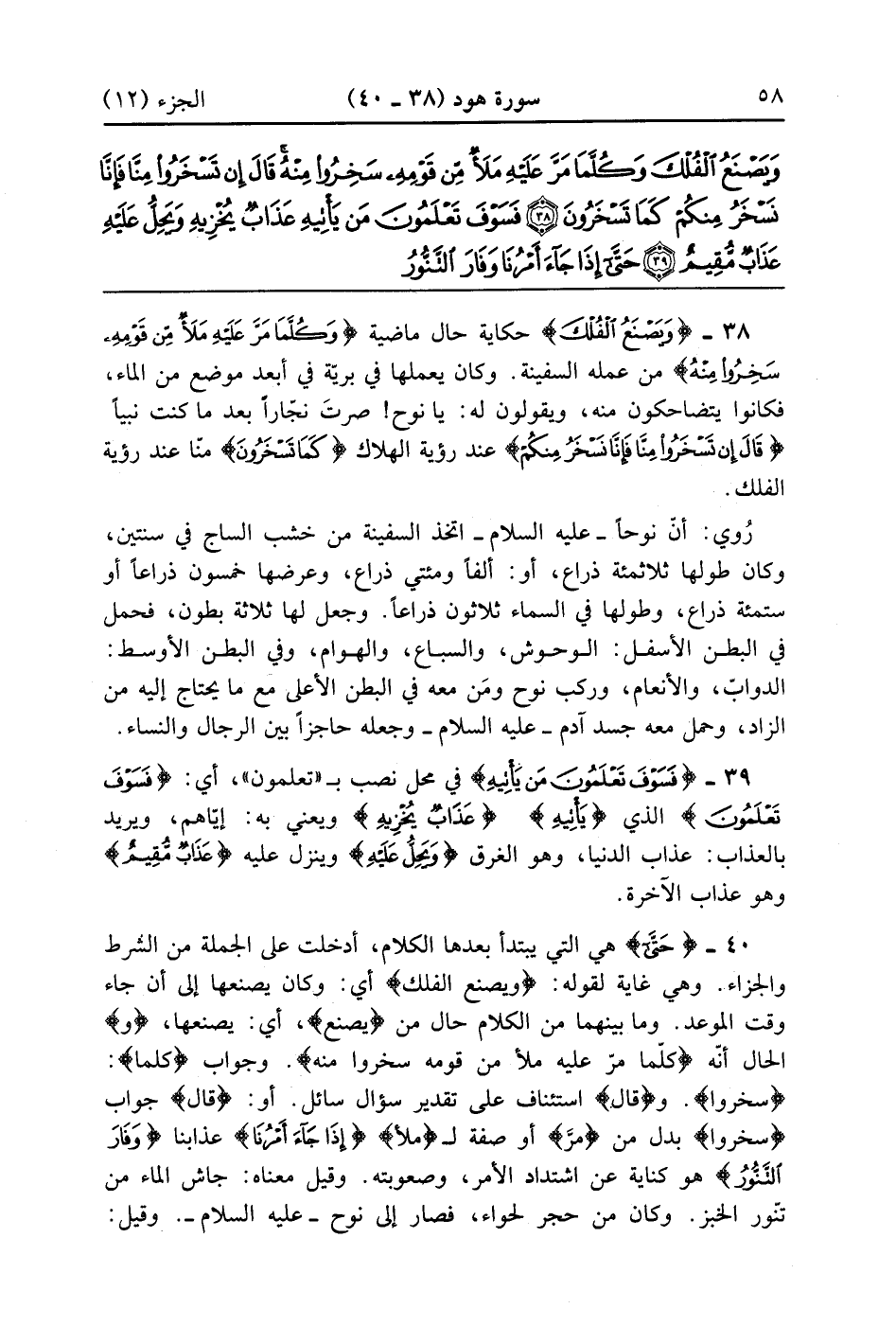 حَتَّى إِذَا جَاءَ أَمْرُنَا وَفَارَ التَّنُّورُ قُلْنَا احْمِلْ فِيهَا مِنْ كُلٍّ زَوْجَيْنِ اثْنَيْنِ وَأَهْلَكَ إِلَّا مَنْ سَبَقَ عَلَيْهِ الْقَوْلُ وَمَنْ آمَنَ وَمَا آمَنَ مَعَهُ إِلَّا قَلِيلٌ (40)