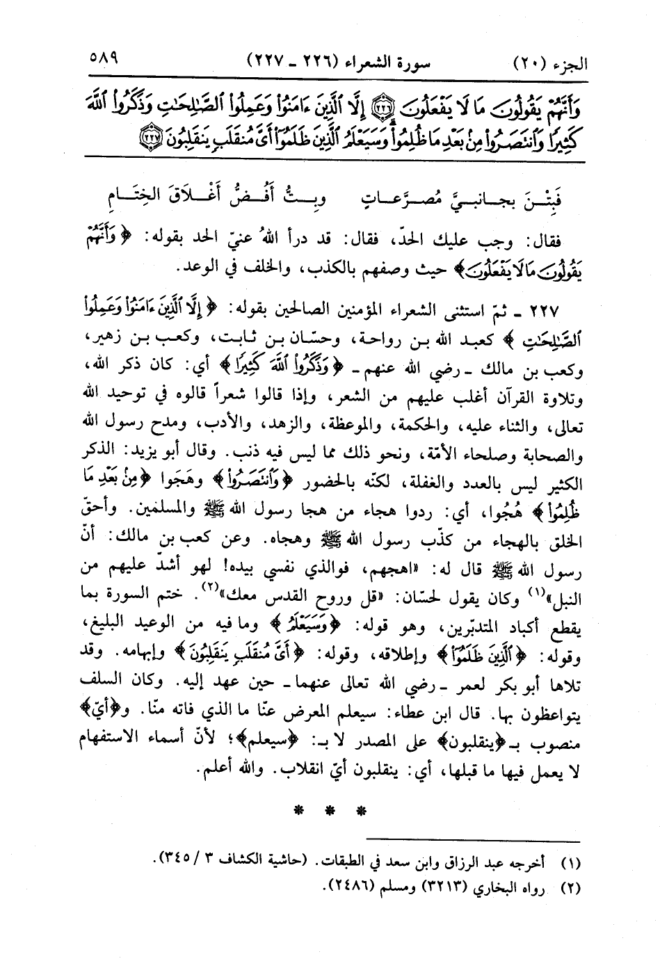 إِلَّا الَّذِينَ آمَنُوا وَعَمِلُوا الصَّالِحَاتِ وَذَكَرُوا اللَّهَ كَثِيرًا وَانْتَصَرُوا مِنْ بَعْدِ مَا ظُلِمُوا وَسَيَعْلَمُ الَّذِينَ ظَلَمُوا أَيَّ مُنْقَلَبٍ يَنْقَلِبُونَ (227)
