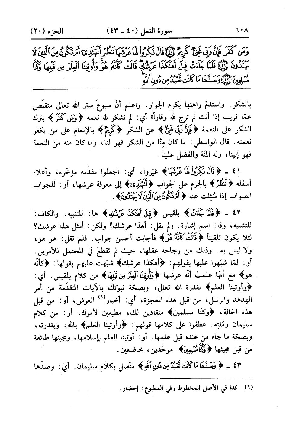 قَالَ نَكِّرُوا لَهَا عَرْشَهَا نَنْظُرْ أَتَهْتَدِي أَمْ تَكُونُ مِنَ الَّذِينَ لَا يَهْتَدُونَ (41)