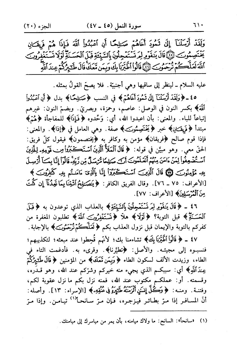 وَلَقَدْ أَرْسَلْنَا إِلَى ثَمُودَ أَخَاهُمْ صَالِحًا أَنِ اعْبُدُوا اللَّهَ فَإِذَا هُمْ فَرِيقَانِ يَخْتَصِمُونَ (45)