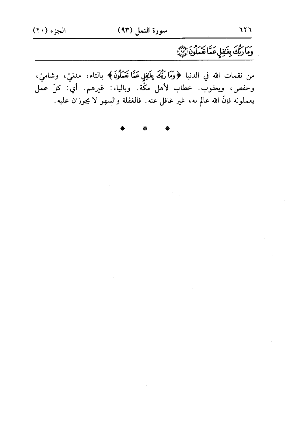 من نقمات الله في الدنيا {وَمَا رَبُّكَ بغافل عَمَّا تَعْمَلُونَ} بالتاء مدني وشامي وحفص ويعقوب خطاب لأهل مكة وبالياء غيرهم أي كل عمل يعملونه فإن الله عالم به غير غافل عنه فالغفة والسهو لا يجوزان عليه