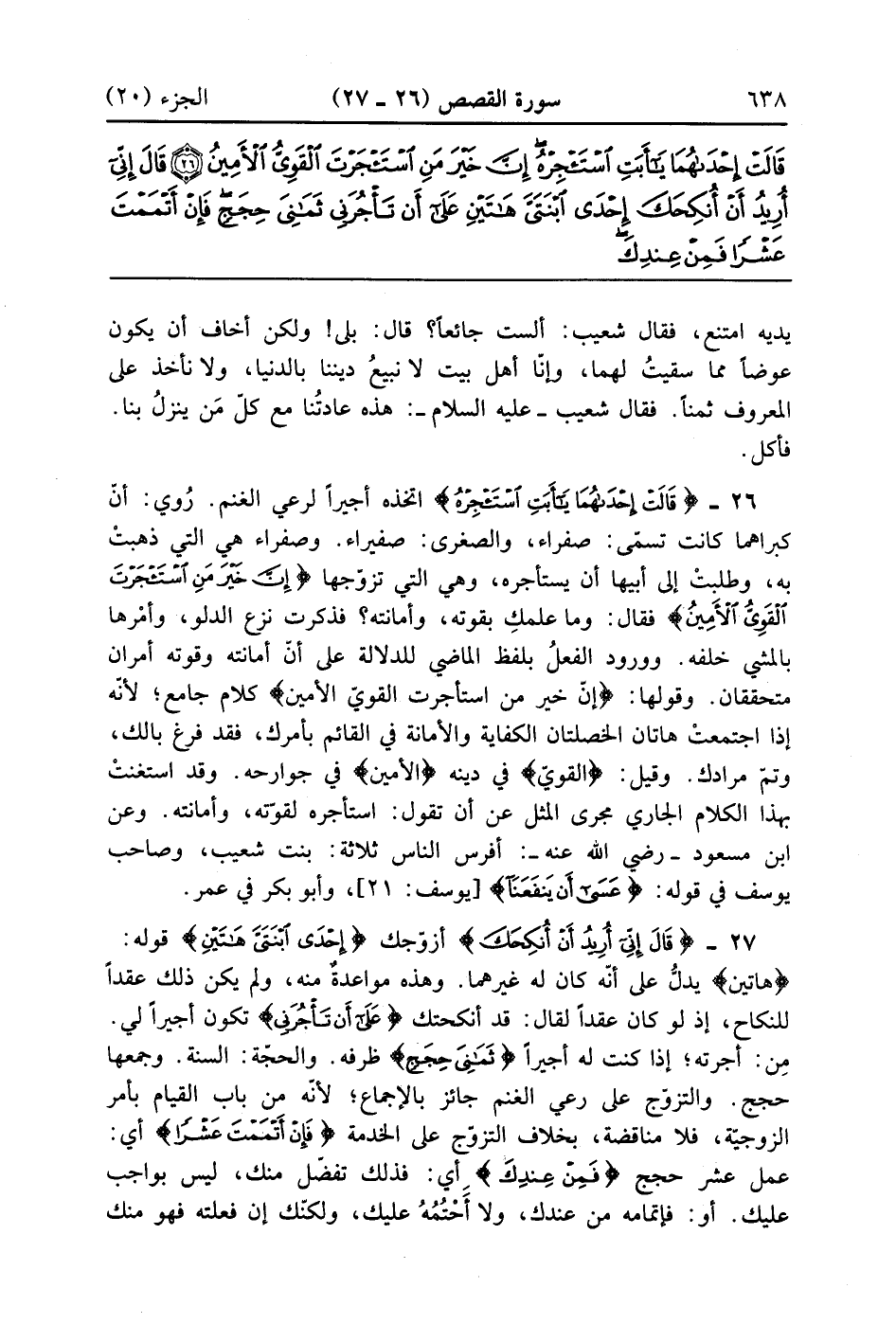 قَالَتْ إِحْدَاهُمَا يَا أَبَتِ اسْتَأْجِرْهُ إِنَّ خَيْرَ مَنِ اسْتَأْجَرْتَ الْقَوِيُّ الْأَمِينُ (26)