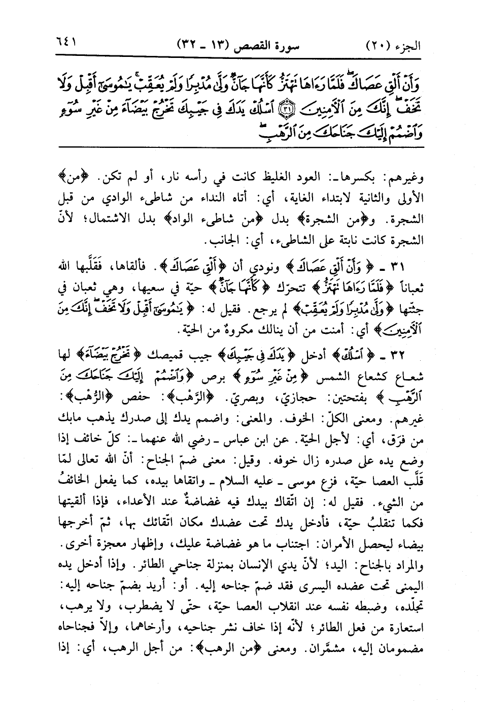 اسْلُكْ يَدَكَ فِي جَيْبِكَ تَخْرُجْ بَيْضَاءَ مِنْ غَيْرِ سُوءٍ وَاضْمُمْ إِلَيْكَ جَنَاحَكَ مِنَ الرَّهْبِ فَذَانِكَ بُرْهَانَانِ مِنْ رَبِّكَ إِلَى فِرْعَوْنَ وَمَلَئِهِ إِنَّهُمْ كَانُوا قَوْمًا فَاسِقِينَ (32)