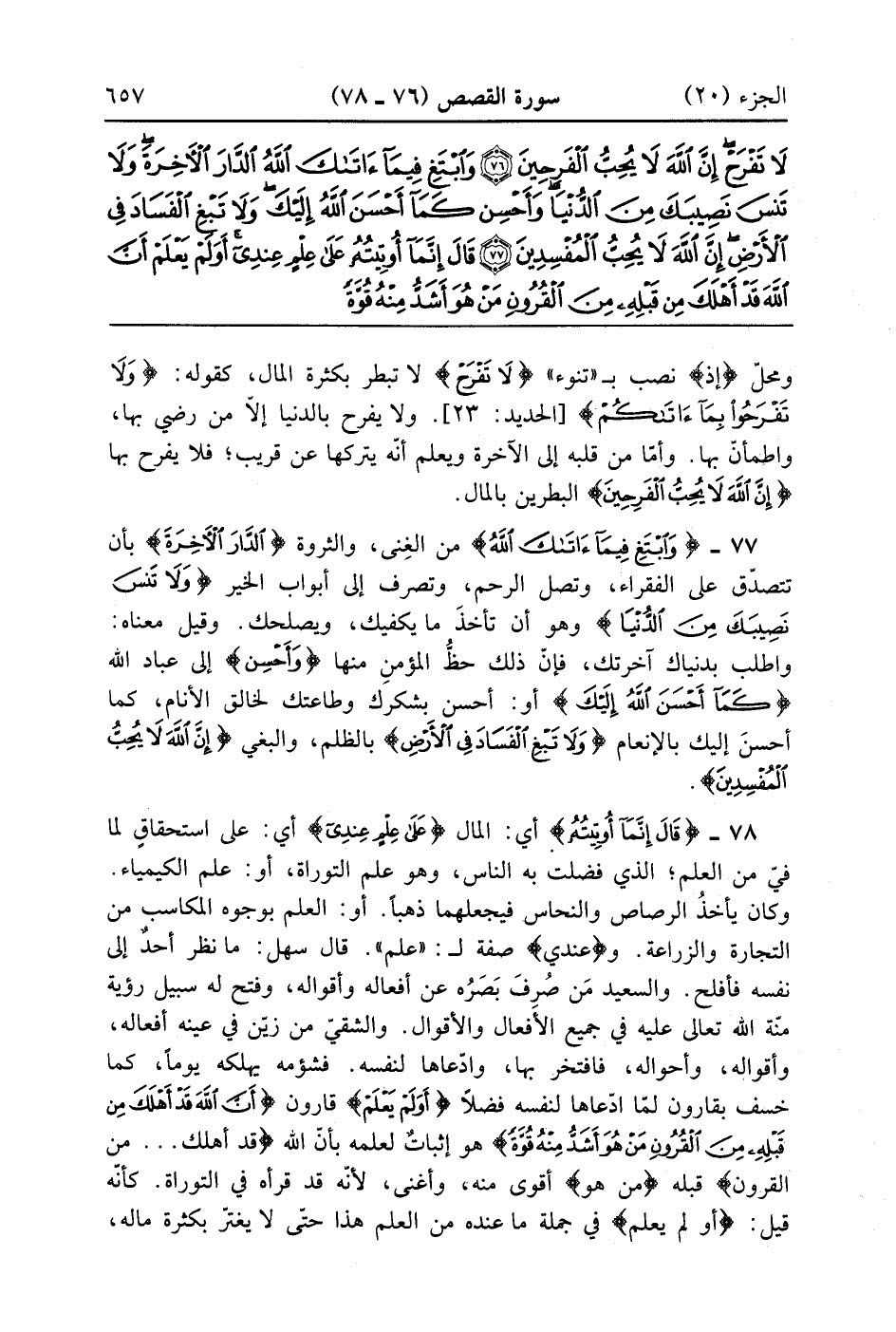 وَابْتَغِ فِيمَا آتَاكَ اللَّهُ الدَّارَ الْآخِرَةَ وَلَا تَنْسَ نَصِيبَكَ مِنَ الدُّنْيَا وَأَحْسِنْ كَمَا أَحْسَنَ اللَّهُ إِلَيْكَ وَلَا تَبْغِ الْفَسَادَ فِي الْأَرْضِ إِنَّ اللَّهَ لَا يُحِبُّ الْمُفْسِدِينَ (77)