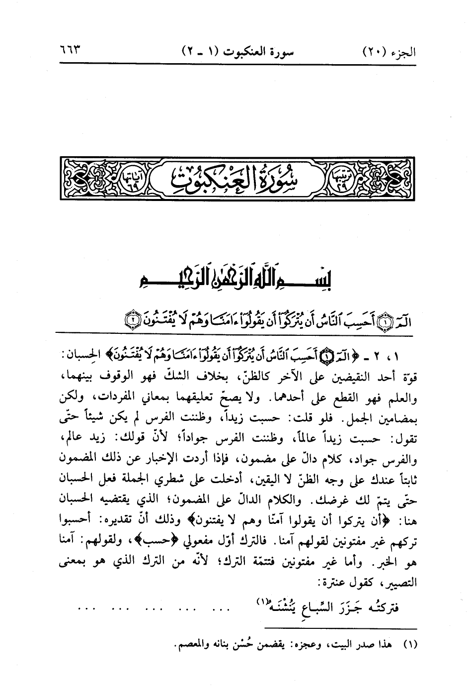 الم (1) أَحَسِبَ النَّاسُ أَنْ يُتْرَكُوا أَنْ يَقُولُوا آمَنَّا وَهُمْ لَا يُفْتَنُونَ (2)