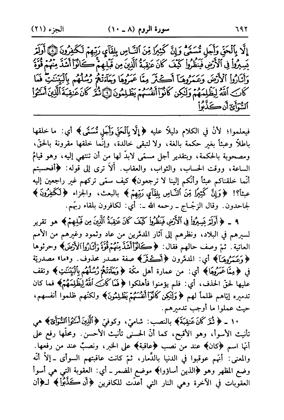 ثُمَّ كَانَ عَاقِبَةَ الَّذِينَ أَسَاءُوا السُّوأَى أَنْ كَذَّبُوا بِآيَاتِ اللَّهِ وَكَانُوا بِهَا يَسْتَهْزِئُونَ (10)