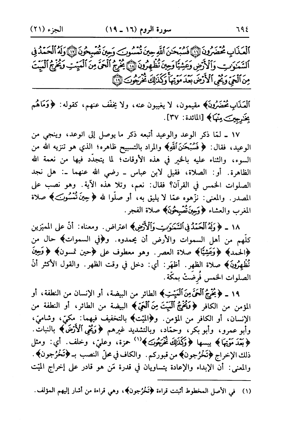 فَسُبْحَانَ اللَّهِ حِينَ تُمْسُونَ وَحِينَ تُصْبِحُونَ (17)