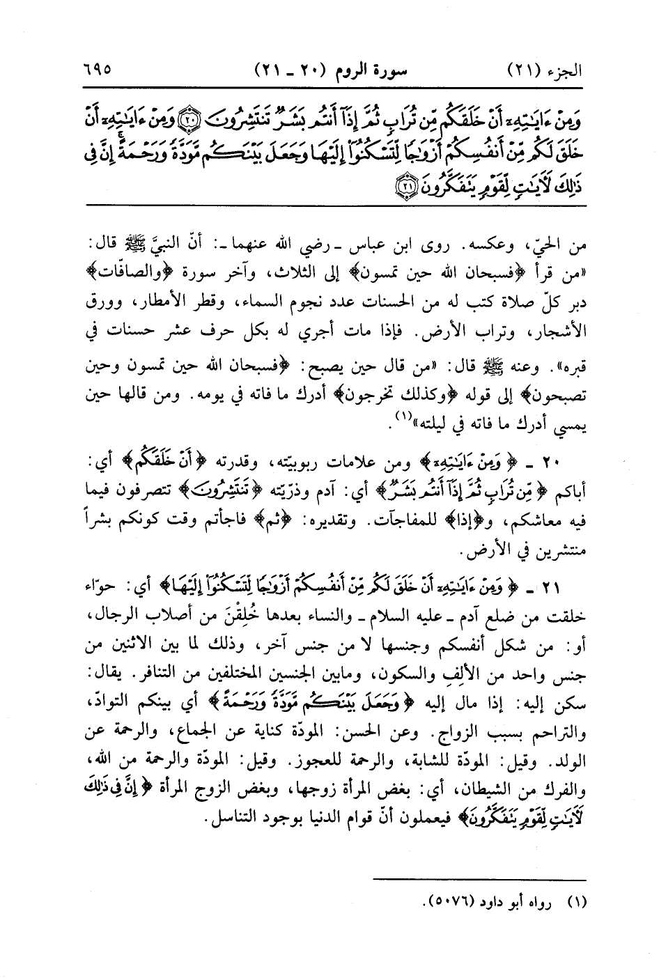 وَمِنْ آيَاتِهِ أَنْ خَلَقَ لَكُمْ مِنْ أَنْفُسِكُمْ أَزْوَاجًا لِتَسْكُنُوا إِلَيْهَا وَجَعَلَ بَيْنَكُمْ مَوَدَّةً وَرَحْمَةً إِنَّ فِي ذَلِكَ لَآيَاتٍ لِقَوْمٍ يَتَفَكَّرُونَ (21)
