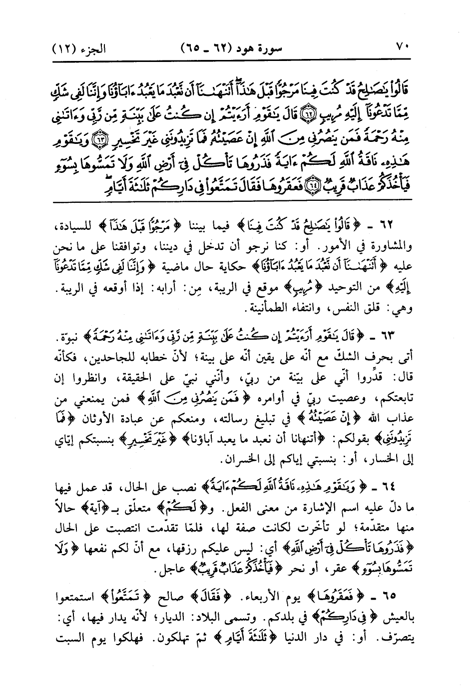 وَيَا قَوْمِ هَذِهِ نَاقَةُ اللَّهِ لَكُمْ آيَةً فَذَرُوهَا تَأْكُلْ فِي أَرْضِ اللَّهِ وَلَا تَمَسُّوهَا بِسُوءٍ فَيَأْخُذَكُمْ عَذَابٌ قَرِيبٌ (64)