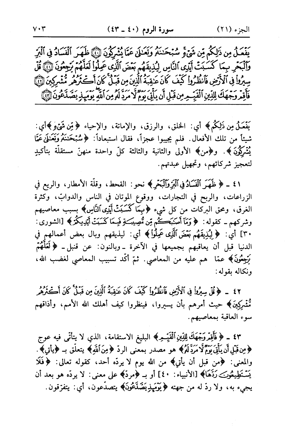 ظَهَرَ الْفَسَادُ فِي الْبَرِّ وَالْبَحْرِ بِمَا كَسَبَتْ أَيْدِي النَّاسِ لِيُذِيقَهُمْ بَعْضَ الَّذِي عَمِلُوا لَعَلَّهُمْ يَرْجِعُونَ (41)