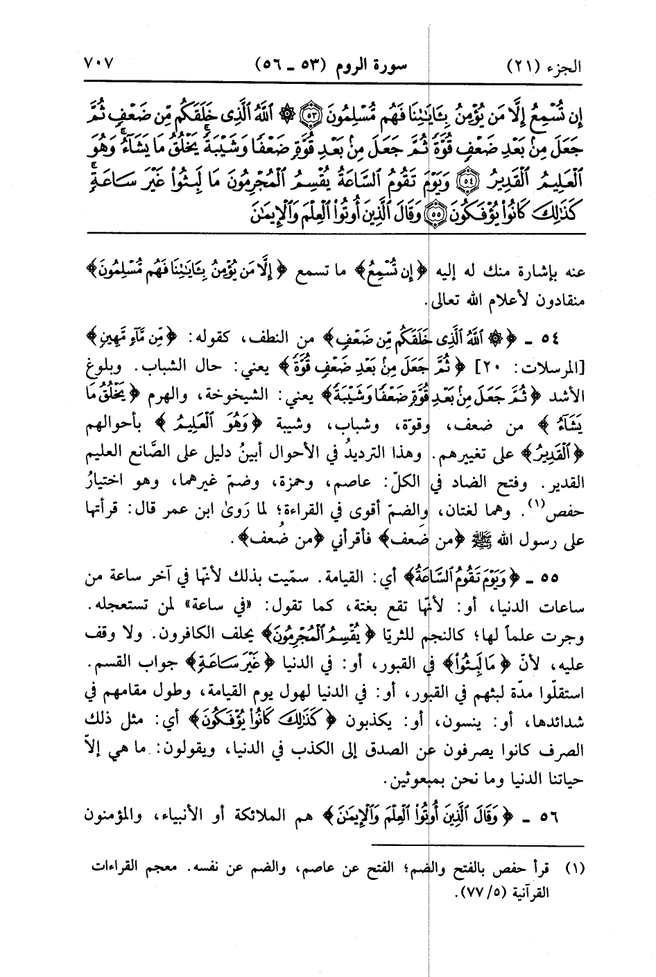 اللَّهُ الَّذِي خَلَقَكُمْ مِنْ ضَعْفٍ ثُمَّ جَعَلَ مِنْ بَعْدِ ضَعْفٍ قُوَّةً ثُمَّ جَعَلَ مِنْ بَعْدِ قُوَّةٍ ضَعْفًا وَشَيْبَةً يَخْلُقُ مَا يَشَاءُ وَهُوَ الْعَلِيمُ الْقَدِيرُ (54)