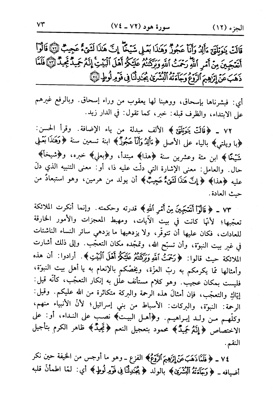قَالُوا أَتَعْجَبِينَ مِنْ أَمْرِ اللَّهِ رَحْمَتُ اللَّهِ وَبَرَكَاتُهُ عَلَيْكُمْ أَهْلَ الْبَيْتِ إِنَّهُ حَمِيدٌ مَجِيدٌ (73)
