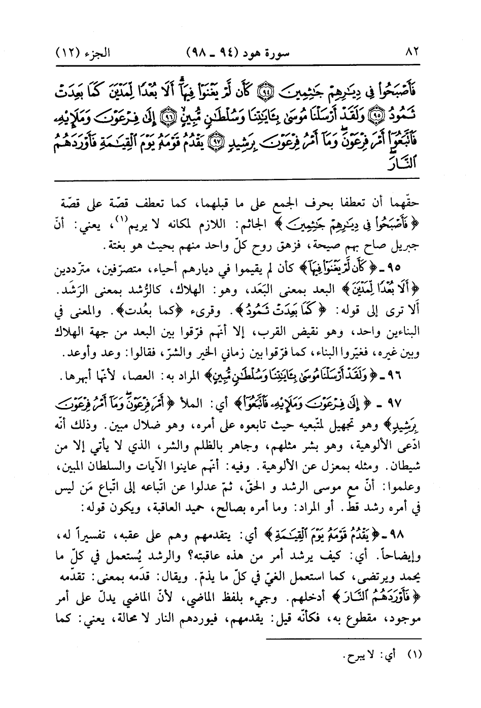 يَقْدُمُ قَوْمَهُ يَوْمَ الْقِيَامَةِ فَأَوْرَدَهُمُ النَّارَ وَبِئْسَ الْوِرْدُ الْمَوْرُودُ (98)