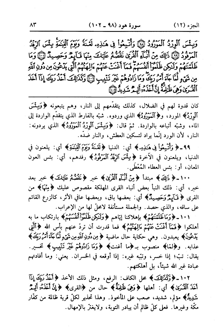 وَكَذَلِكَ أَخْذُ رَبِّكَ إِذَا أَخَذَ الْقُرَى وَهِيَ ظَالِمَةٌ إِنَّ أَخْذَهُ أَلِيمٌ شَدِيدٌ (102)