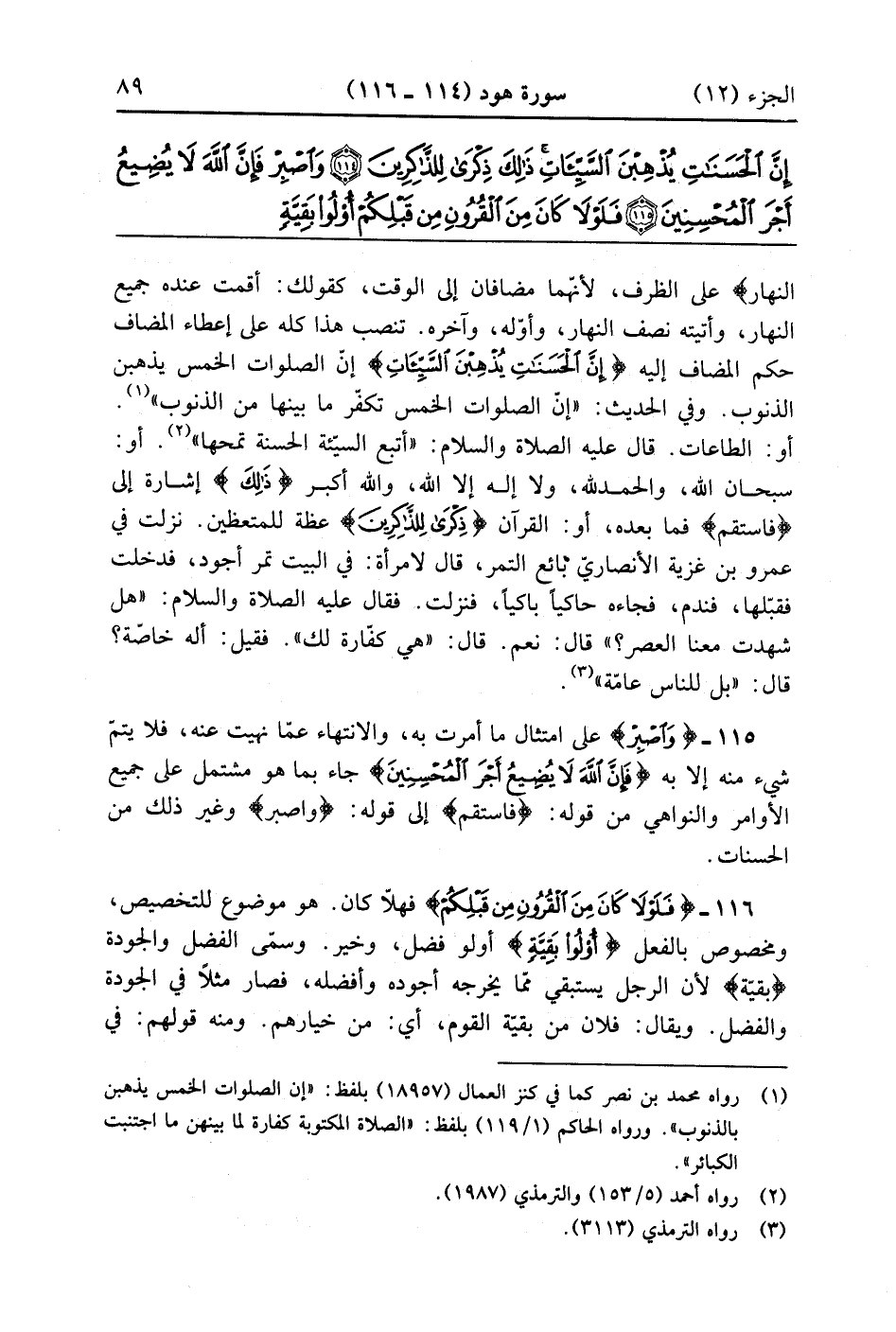 فَلَوْلَا كَانَ مِنَ الْقُرُونِ مِنْ قَبْلِكُمْ أُولُو بَقِيَّةٍ يَنْهَوْنَ عَنِ الْفَسَادِ فِي الْأَرْضِ إِلَّا قَلِيلًا مِمَّنْ أَنْجَيْنَا مِنْهُمْ وَاتَّبَعَ الَّذِينَ ظَلَمُوا مَا أُتْرِفُوا فِيهِ وَكَانُوا مُجْرِمِينَ (116)
