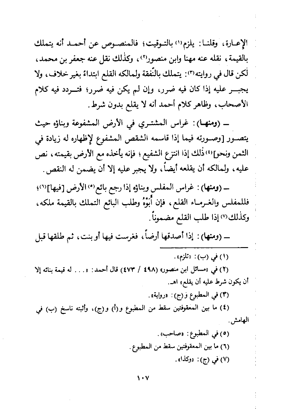 (¬2) في "مسائل ابن منصور" (498/ 473) قال أحمد: ". . . له قيمة بنائه الا أن يكون شرط عليه أن يقلع" اهـ.