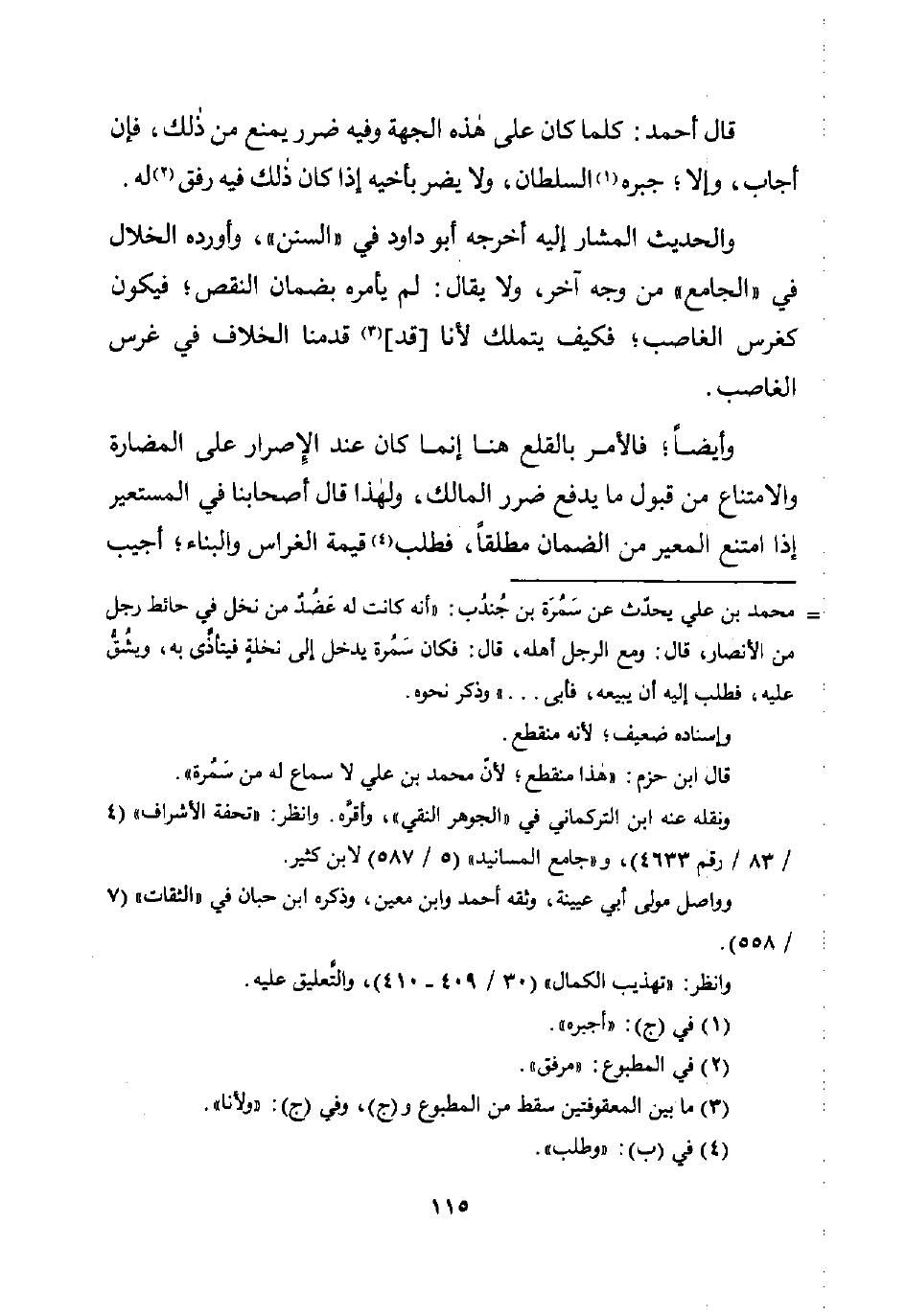 = محمد بن علي يحدّث عن سَمُرَة بن جُندُب: "أنه كانت له عَضُدٌ من نخل في حائط رجل من الأنصار، قال: ومع الرجل أهله، قال: فكان سَمُرة يدخل إلى نخلةٍ فيتأذَّى به، ويشُقُّ عليه، فطلب إليه أن يبيعه، فأبى. . . " وذكر نحوه.