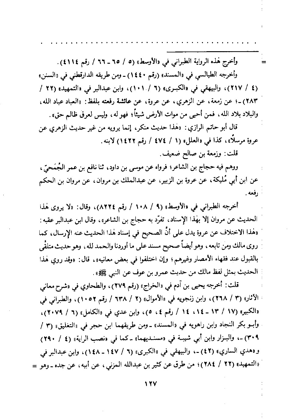وأخرجه الطيالسي في "المسند" (رقم 1440) -ومن طريقه الدارقطني في "السنن" (4/ 217)، والبيهقي في "الكبرى" (6/ 101)، وابن عبد البر في "التمهيد" (22/ 283) -؛ عن زمعة، عن الزهري، عن عروة، عن عائشة رفعتة بلفظ: "العباد عباد اللَّه، والبلاد بلاد اللَّه، فمن أحيى من موات الأرض شيئًا؛ فهو له، وليس لعرق ظالم حق".