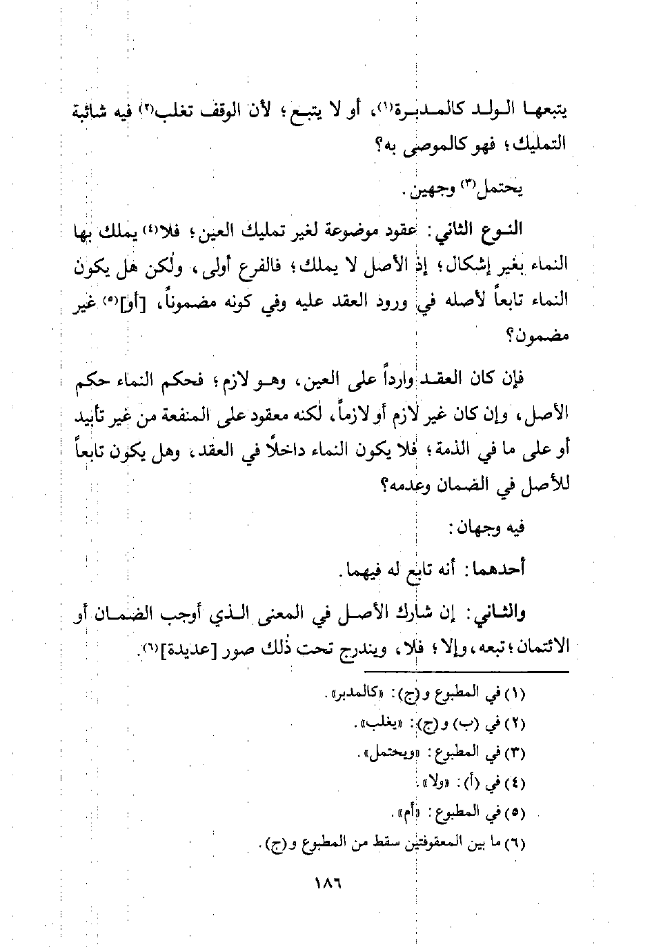 فإن كان العقد واردًا على العين، وهو لازم؛ فحكم النماء حكم الأصل، وإن كان غير لازم أو لازمًا، لكنه معقود على المنفعة من غير تأبيد أو على ما في الذمة؛ فلا يكون النماء داخلًا في العقد، وهل يكون تابعًا للأصل في الضمان وعدمه؟