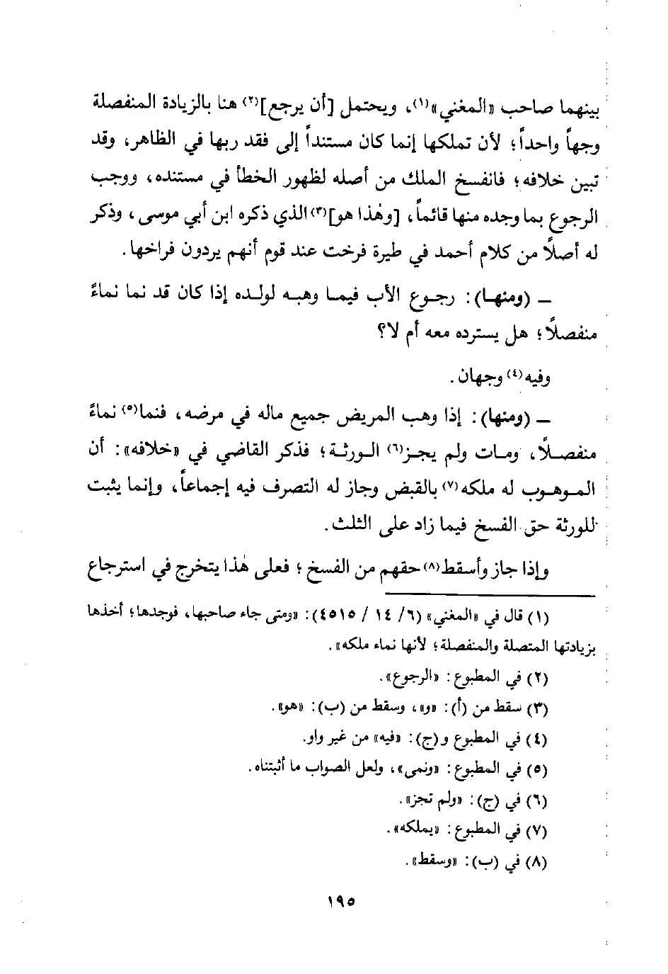 - (ومنها): رجوع الأب فيما وهبه لولده إذا كان قد نما نماءً منفصلًا؛ هل يسترده معه أم لا؟