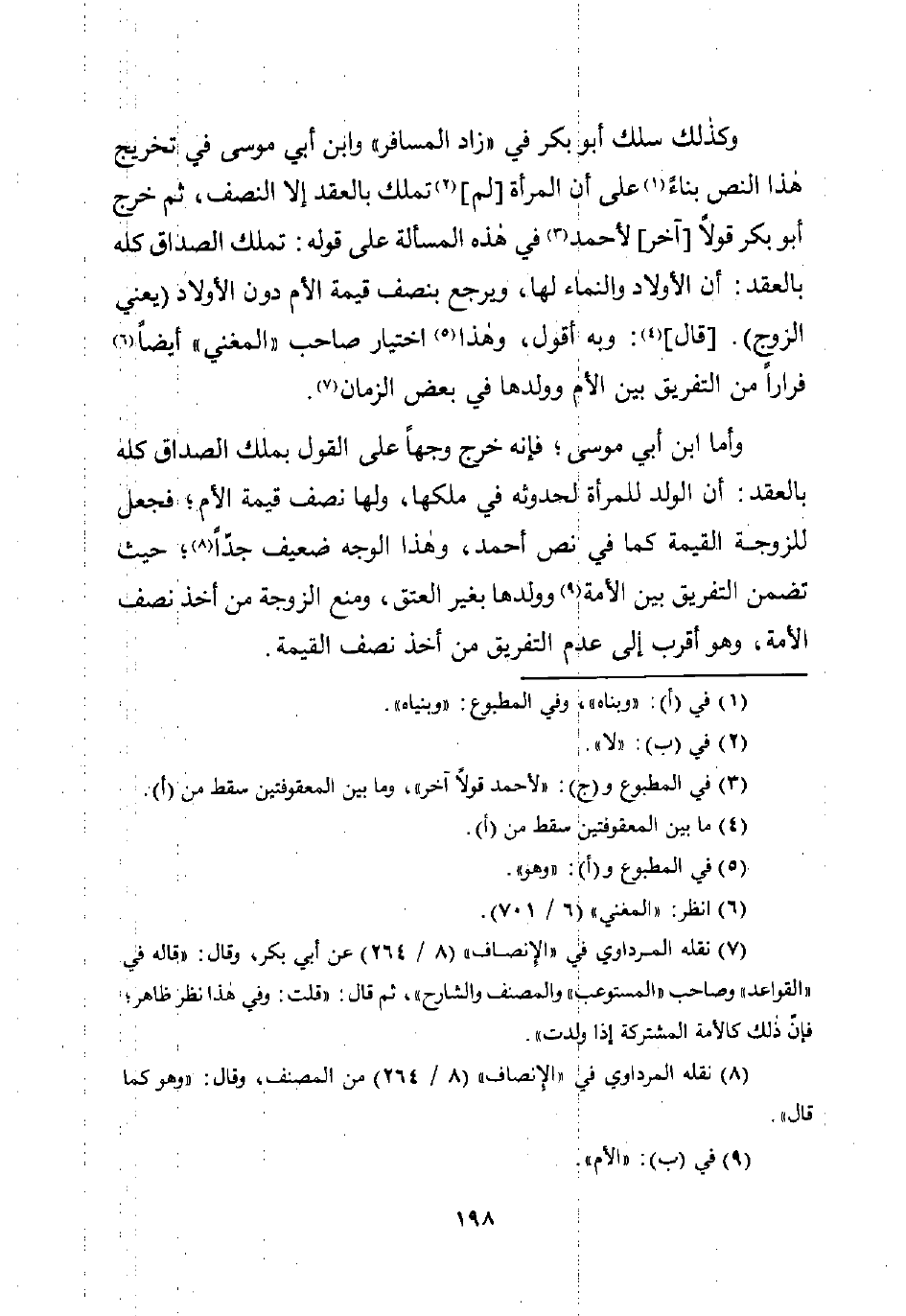 (¬7) نقله المرداوي في "الإنصاف" (8/ 264) عن أبي بكر، وقال: "قاله في "القواعد" وصاحب "المستوعب" والمصنف والشارح"، ثم قال: "قلت: وفي هذا نظر ظاهر؛ فإن ذلك كالأمة المشتركة إذا ولدت".