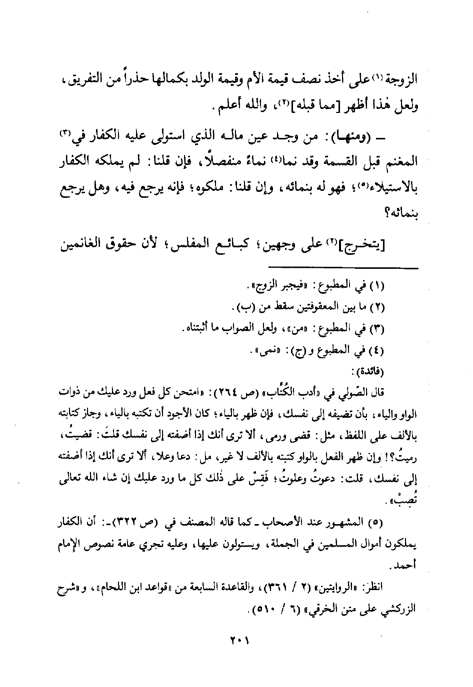 (¬5) المشهور عند الأصحاب -كما قاله المصنف في (ص 322) -: أن الكفار يملكون أموال المسلمين في الجملة، ويستولون عليها، وعليه تجري عامة نصوص الإمام أحمد.