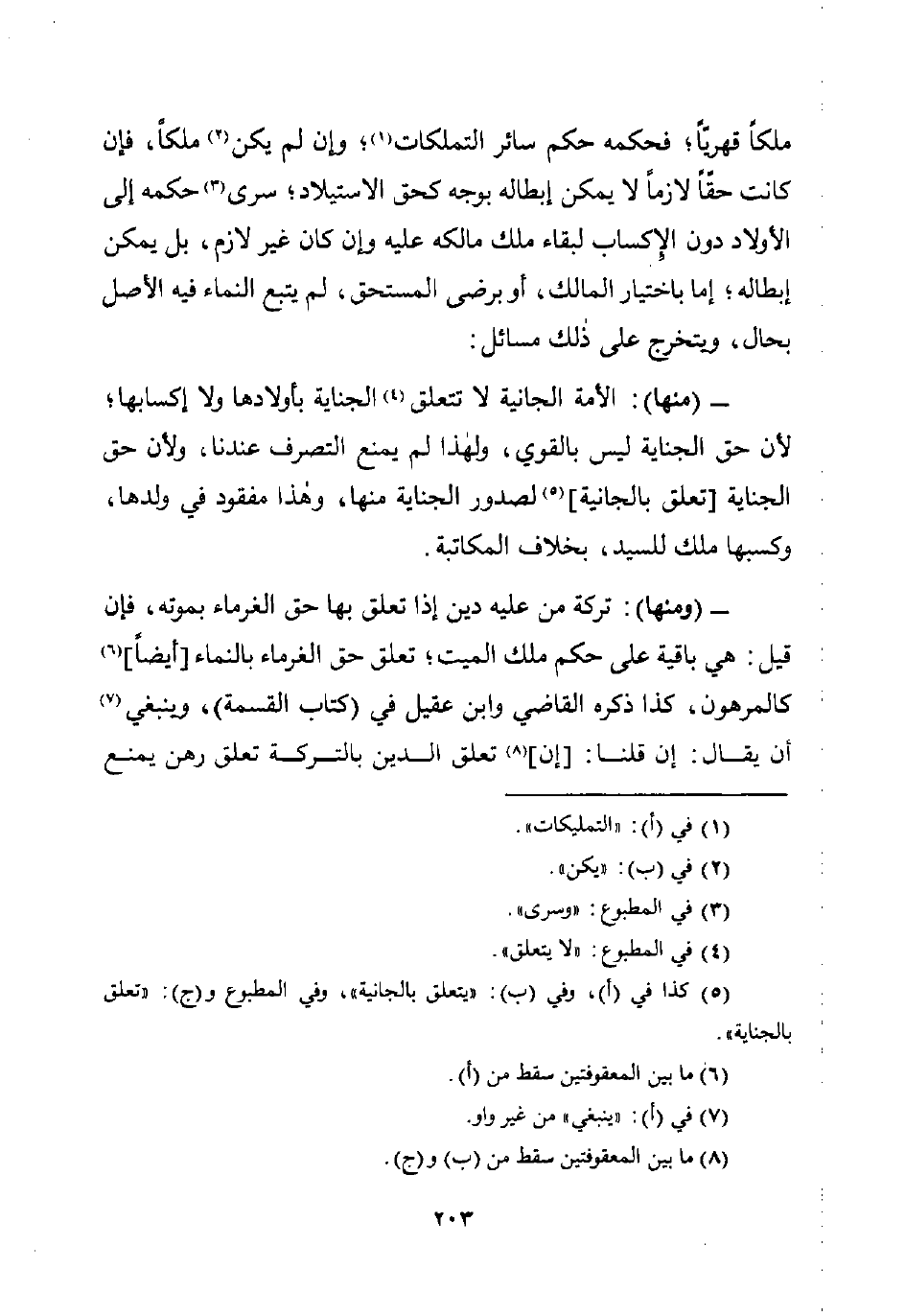 (¬5) كذا في (أ)، وفي (ب): "يتعلق بالجانية"، وفي المطبوع و (ج): "تعلق بالجناية".