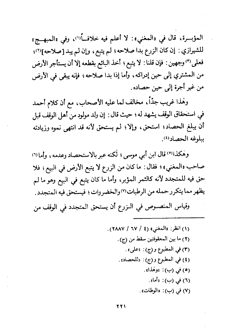 وهذا غريب جدًّا، مخالف لما عليه الأصحاب، مع أن كلام أحمد في استحقاق الوقف يشهد له؛ حيث قال: إن ولد مولود من أهل الوقف قبل أن يبلغ الحصاد؛ استحق، وإلا؛ لم يستحق لأنه قد انتهى نموه وزيادته ببلوغه الحصاد (¬4).