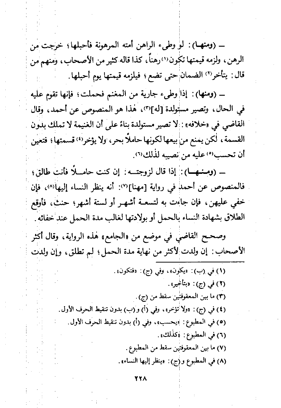 - (ومنها): إذا وطئ جارية من المغنم فحملت؛ فإنها تقوم عليه في الحال، وتصير مستولدة [له] (¬3)، هذا هو المنصوص عن أحمد، وقال القاضي في "خلافه": لا تصير مستولدة بناءً على أن الغنيمة لا تملك بدون القسمة، لكن يمنع من بيعها لكونها حاملًا بحر، ولا يؤخر (¬4) قسمتها؛ فتعين أن تحسب (¬5) عليه من نصيبه لذلك (¬6).