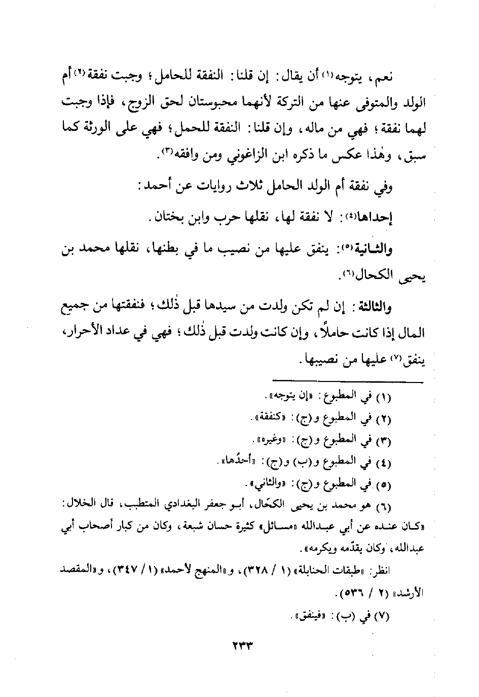 وفي نفقة أم الولد الحامل ثلاث روايات عن أحمد:
