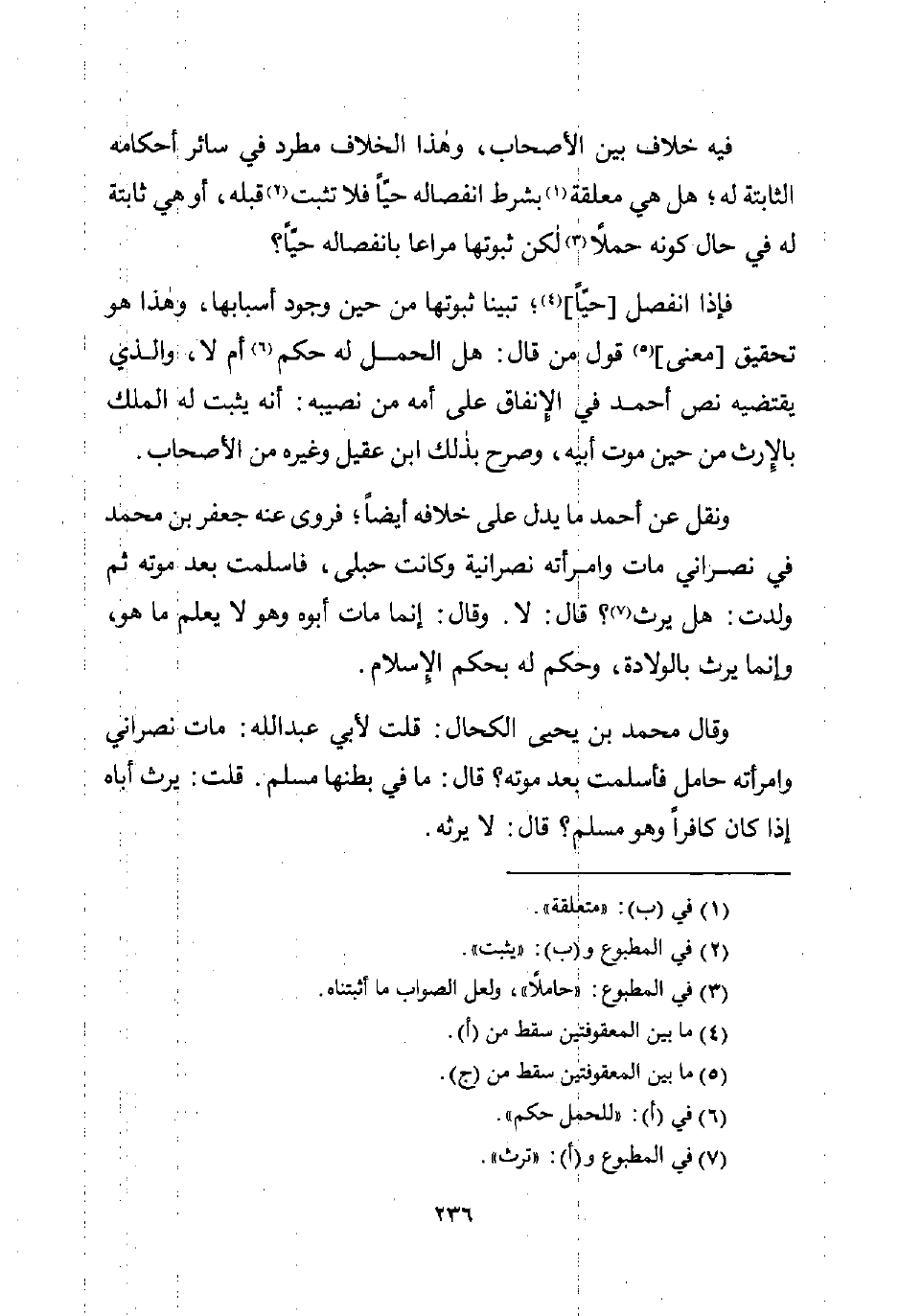 ونقل عن أحمد ما يدل على خلافه أيضًا؛ فروى عنه جعفر بن محمد في نصراني مات وامرأته نصرانية وكانت حبلى، فأسلمت بعد موته ثم ولدت: هل يرث (¬7)؟ قال: لا. وقال: إنما مات أبوه وهو لا يعلم ما هو، وإنما يرث بالولادة، وحكم له بحكم الإسلام.