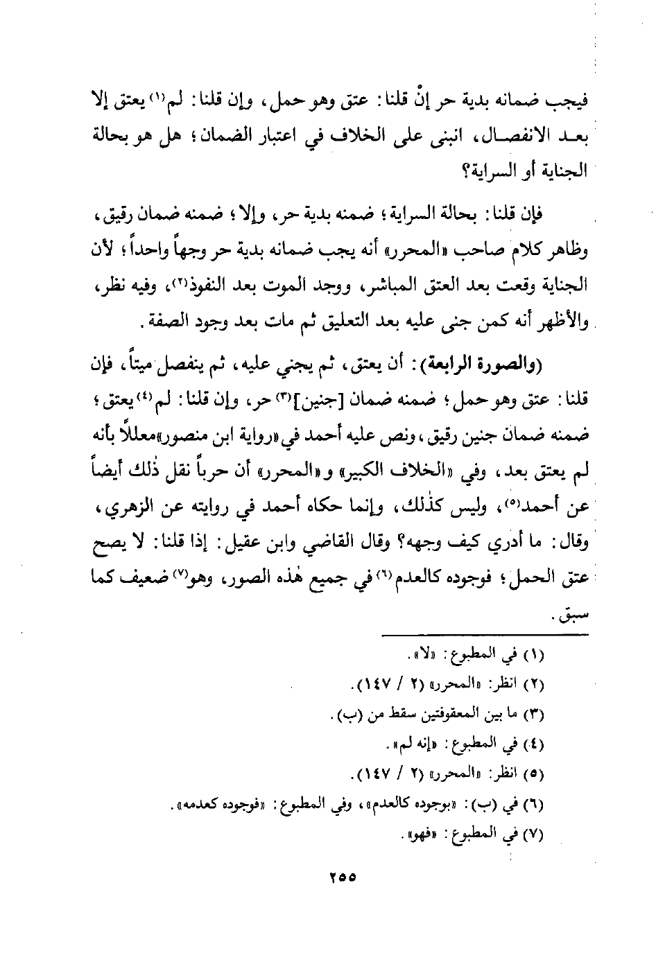 (والصورة الرابعة): أن يعتق، ثم يجني عليه، ثم ينفصل ميتًا، فإن قلنا: عتق وهو حمل؛ ضمنه ضمان [جنين] (¬3) حر، وإن قلنا: لم (¬4) يعتق؛ ضمنه ضمان جنين رقيق، ونص عليه أحمد في "رواية ابن منصور" معللًا بأنه لم يعتق بعد، وفي "الخلاف الكبير" و"المحرر" أن حربًا نقل ذلك أيضًا عن أحمد (¬5)، وليس كذلك، وإنما حكاه أحمد في روايته عن الزهري، وقال: ما أدري كيف وجهه؟ وقال القاضي وابن عقيل: إذا قلنا: لا يصح عتق العمل؛ فوجوده كالعدم (¬6) في جميع هذه الصور، وهو (¬7) ضعيف كما سبق.