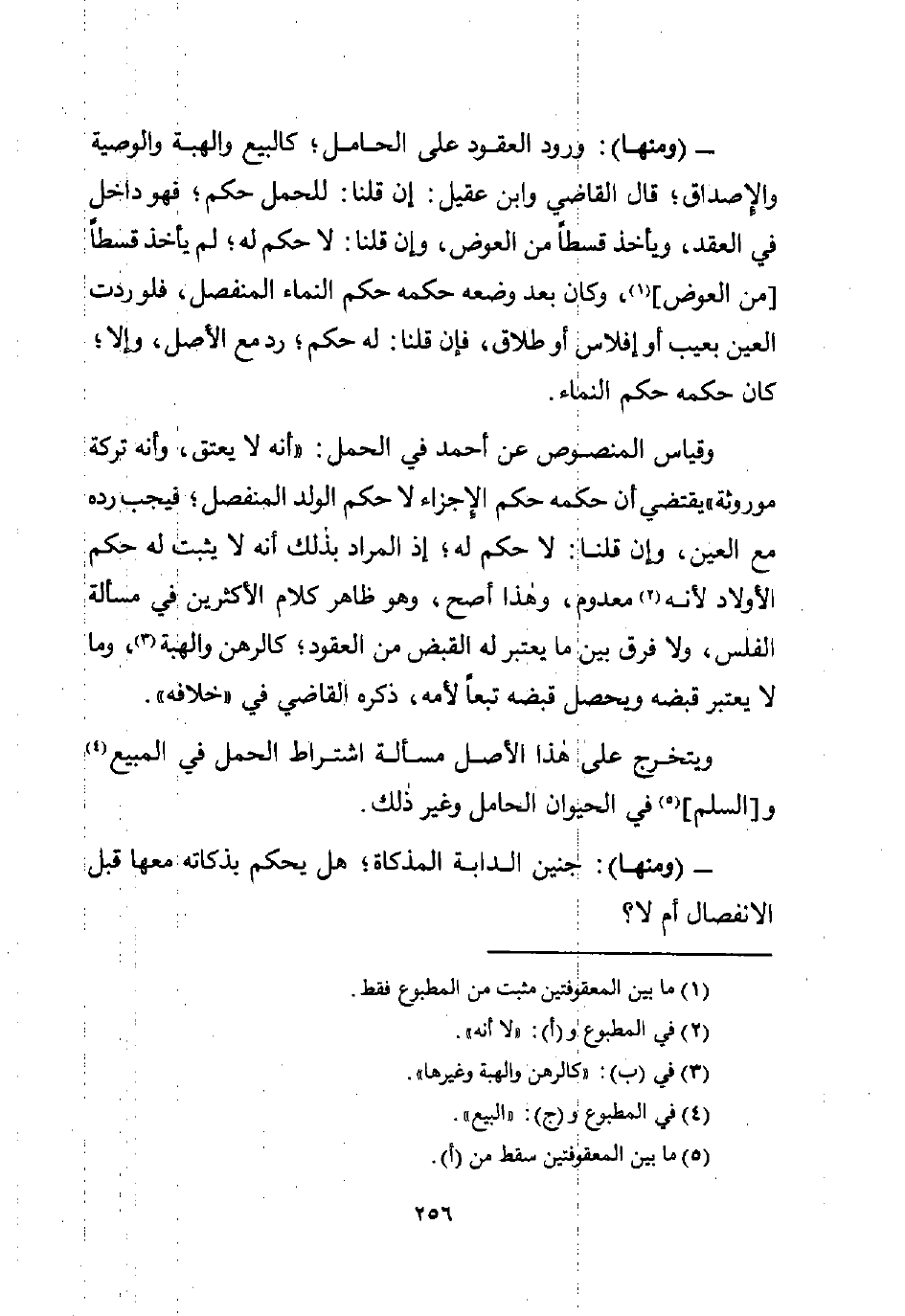 - (ومنها): ورود العقود على الحامل؛ كالبيع والهبة والوصية والإصداق؛ قال القاضي وابن عقيل: إن قلنا: للحمل حكم؛ فهو داخل في العقد، ويأخذ قسطًا من العوض، وإن قلنا: لا حكم له؛ لم يأخذ قسطًا [من العوض] (¬1)، وكان بعد وضعه حكمه حكم النماء المنفصل، فلوردت العين بعيب أو إفلاس أو طلاق، فإن قلنا: له حكم؛ رد مع الأصل، وإلا؛ كان حكمه حكم النماء.