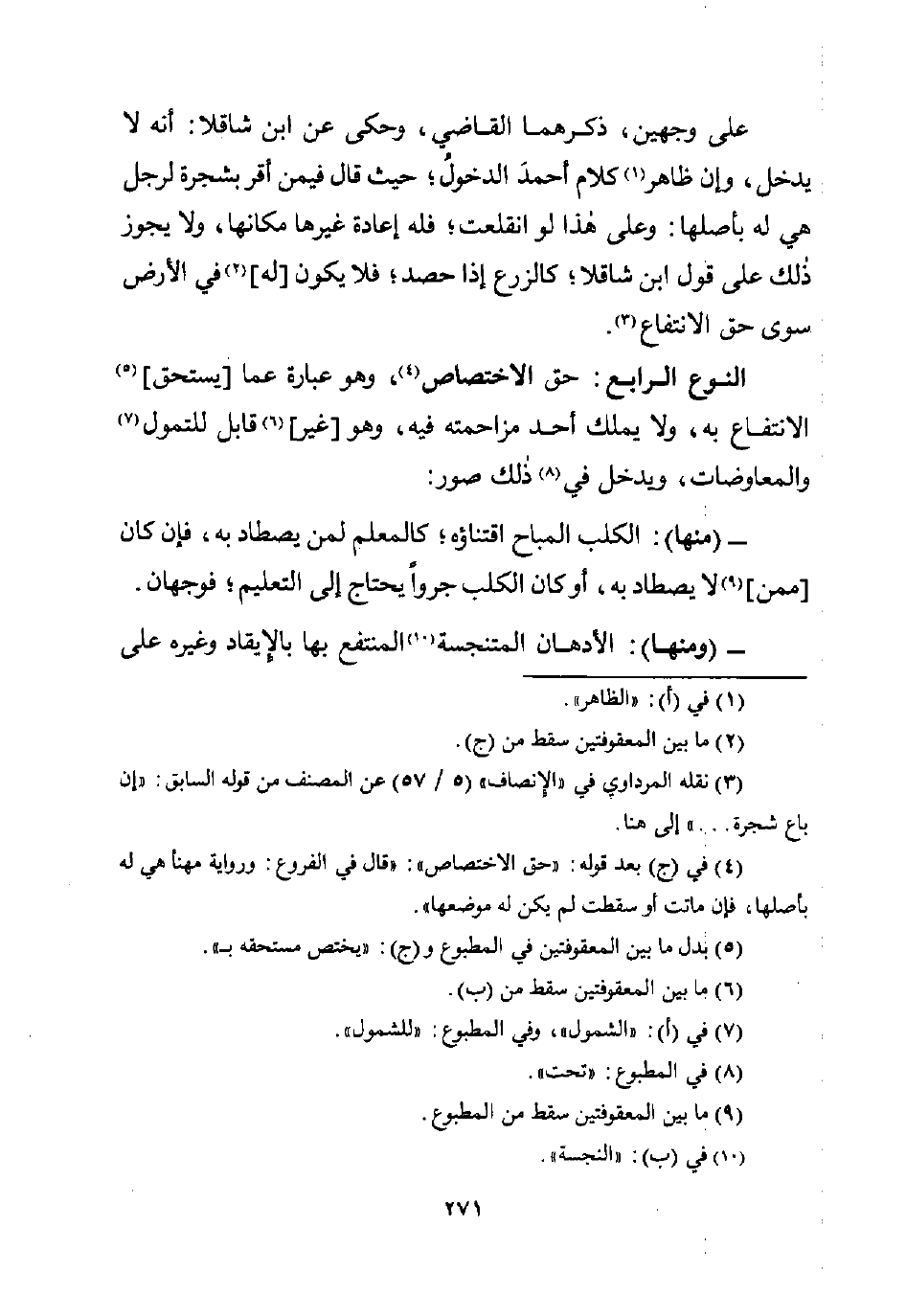 النوع الرابع: حق الاختصاص (¬4)، وهو عبارة عما [يستحق] (¬5) الانتفاع به، ولا يملك أحد مزاحمته فيه، وهو [غير] (¬6) قابل للتمول (¬7) والمعاوضات، ويدخل في (¬8) ذلك صور: