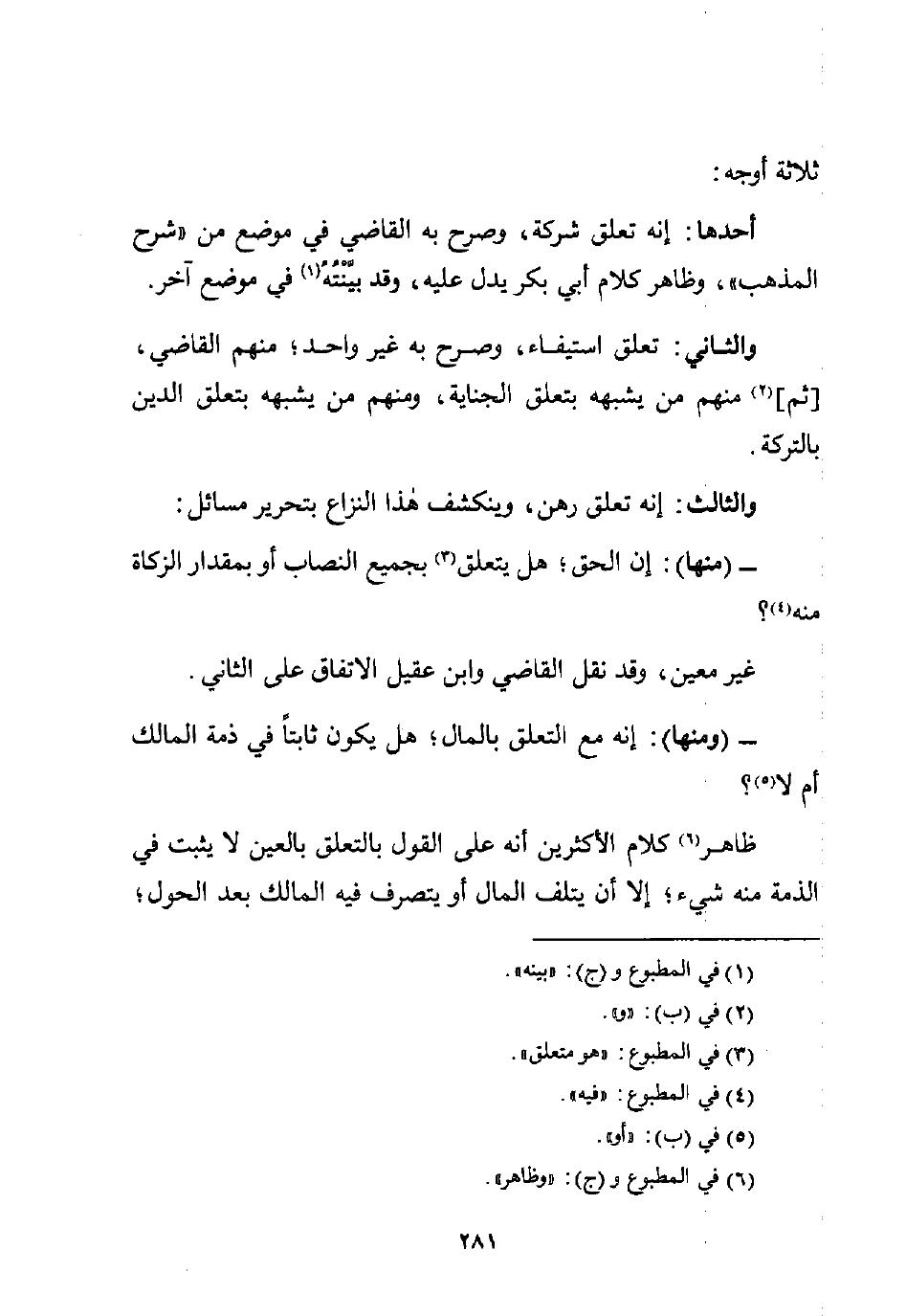 - (ومنها): إنه مع التعلق بالمال؛ هل يكون ثابتًا في ذمة المالك أم لا (¬5)؟
