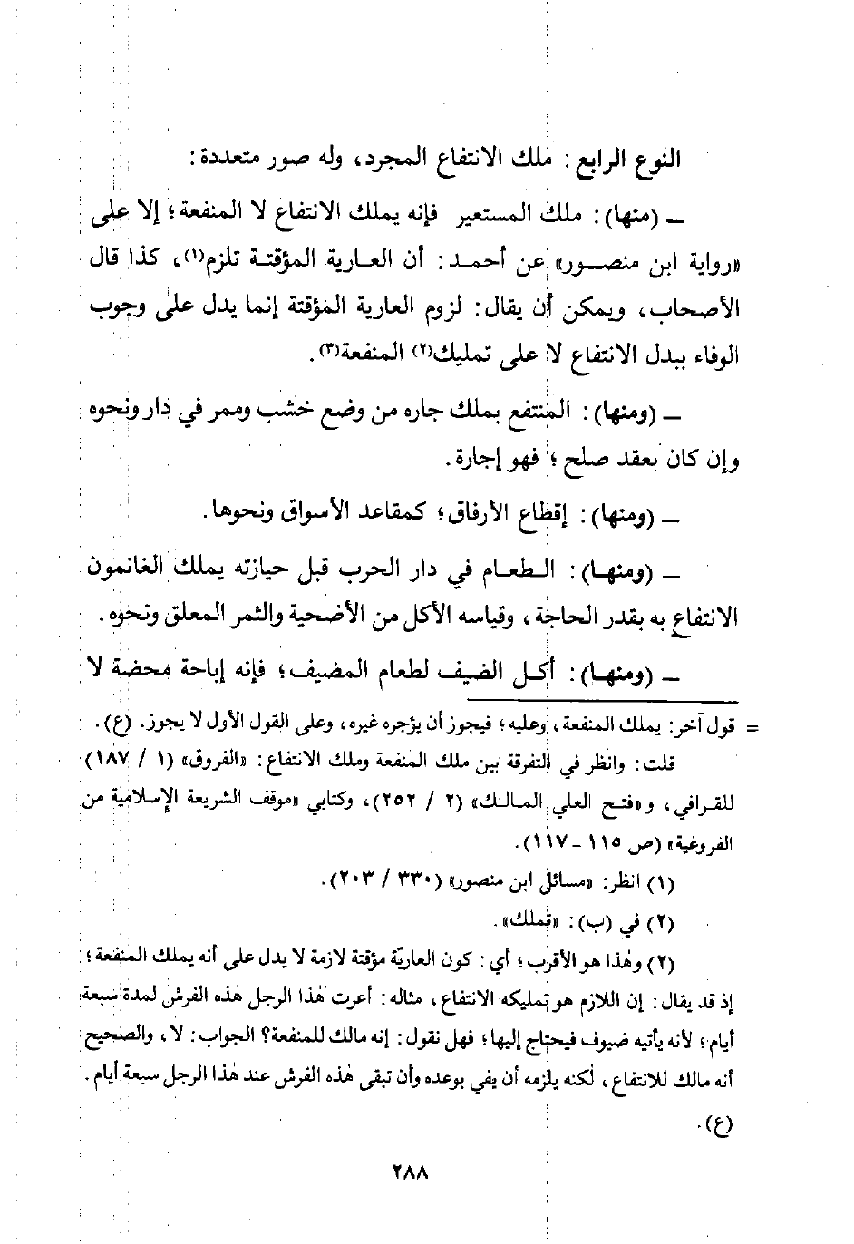 قلت: وانظر في التفرقة بين ملك المنفعة وملك الانتفاع: "الفروق" (1/ 187) للقرافي، و"فتح العلي المالك" (2/ 252)، وكتابي "موقف الشريعة الإِسلامية من الفروغية" (ص 115 - 117).