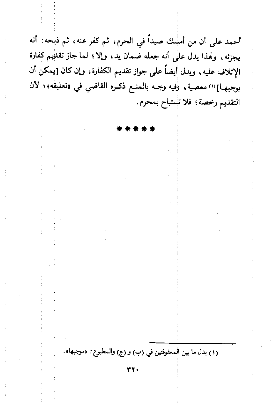 أحمد على أن من أمسك صيدًا في الحرم، ثم كفر عنه، ثم ذبحه: أنه يجزئه، وهذا يدل على أنه جعله ضمان يد، وإلا؛ لما جاز تقديم كفارة الإتلاف عليه، ويدل أيضًا على جواز تقديم الكفارة، وإن كان [يمكن أن يوجبها] (¬1) معصية، وفيه وجه بالمنع ذكره القاضي في "تعليقه"؛ لأن التقديم رخصة؛ فلا تستباح بمحرم.