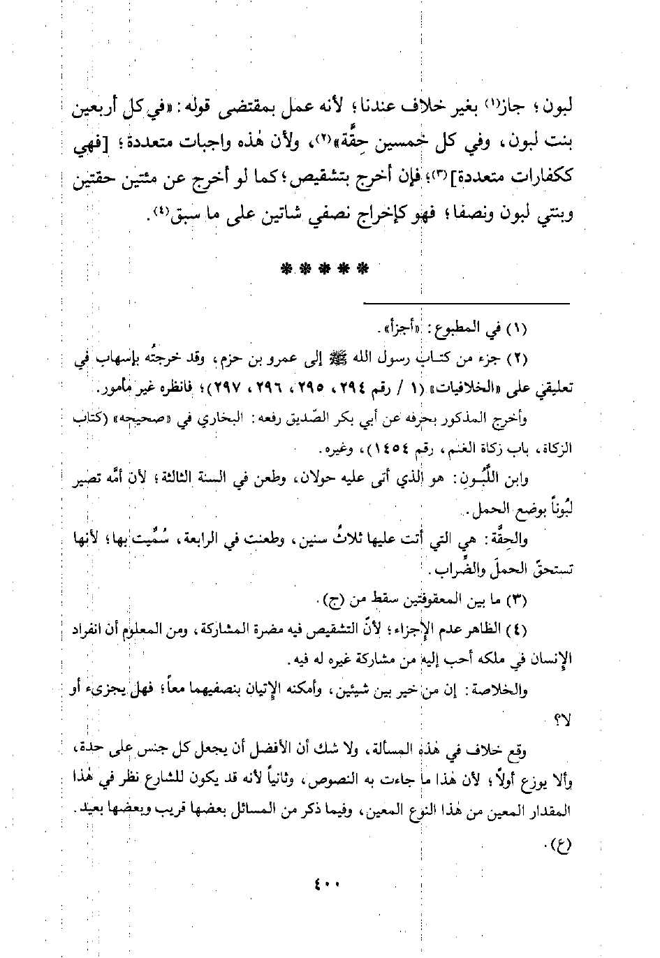 لبون؛ جاز (¬1) بغير خلاف عندنا؛ لأنه عمل بمقتضى قوله: "في كل أربعين بنت لبون، وفي كل خمسين حِقَّة" (¬2)، ولأن هذه واجبات متعددة؛ [فهي ككفارات متعددة] (¬3)؛ فإن أخرج بتشقيص؛ كما لو أخرج عن مئتين حقتين وبنتي لبون ونصفا؛ فهو كإخراج نصفي شاتين على ما سبق (¬4).