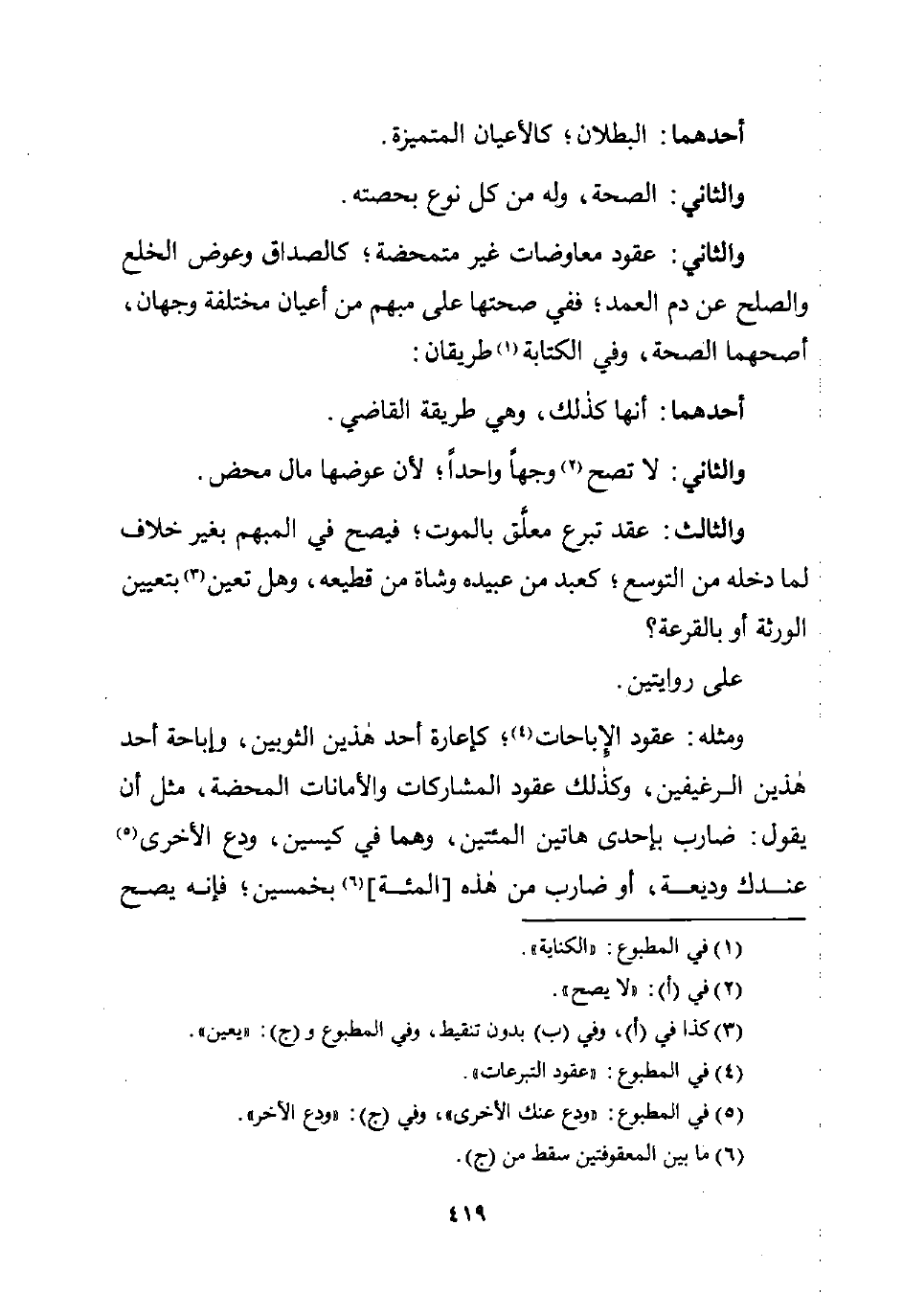 ومثله: عقود الإباحات (¬4)؛ كإعارة أحد هذين الثوبين، وإباحة أحد هذين الرغيفين، وكذلك عقود المشاركات والأمانات المحضة، مثل أن يقول: ضارب بإحدى هاتين المئتين، وهما في كيسين، ودع الأخرى (¬5) عندك وديعة، أو ضارب من هذه [المئة] (¬6) بخمسين؛ فإنه يصح