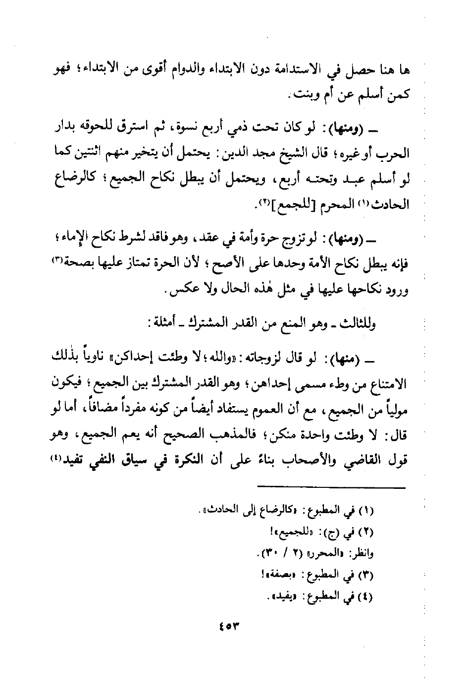 - (ومنها): لو كان تحت ذمي أربع نسوة، ثم استرق للحوقه بدار الحرب أو غيره؛ قال الشيخ مجد الدين: يحتمل أن يتخير منهم اثنتين كما لو أسلم عبد وتحته أربع، ويحتمل أن يبطل نكاح الجميع؛ كالرضاع الحادث (¬1) المحرم [للجمع] (¬2).