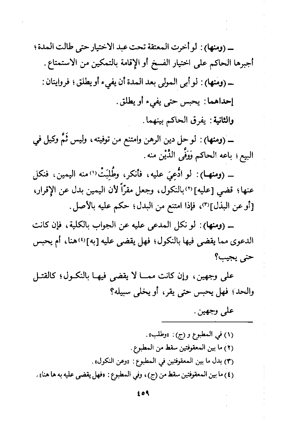 (¬3) بدل ما بين المعقوفتين في المطبوع: "وعن النكول".