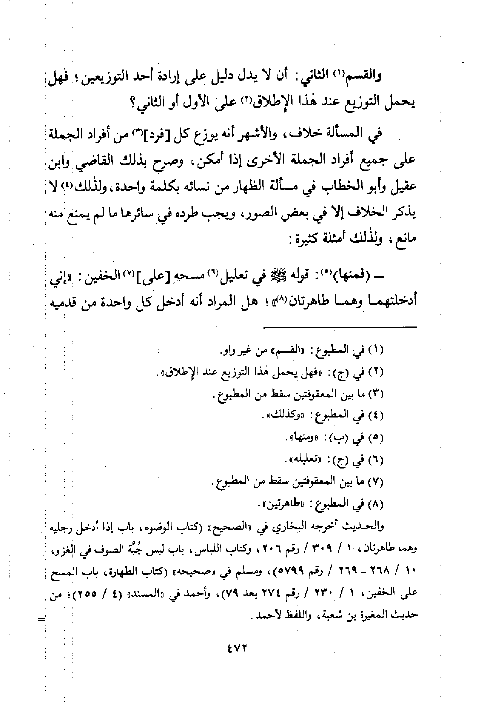 - (فمنها) (¬5): قوله -صلى اللَّه عليه وسلم- في تعليل (¬6) مسحه [على] (¬7) الخفين: "إني أدخلتهما وهما طاهرتان (¬8) "؛ هل المراد أنه أدخل كل واحدة من قدميه