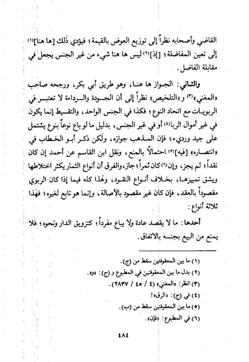 والثاني: الجواز ها هنا، وهو طريق أبي بكر، ورجحه صاحب "المغني" (¬3) و"التلخيص" نظرًا إلى أن الجودة والرداءة لا تعتبر في الربويات مع اتحاد النوع؛ فكذا في الجنس الواحد، والتقسيط إنما يكون في غير أموال الربا (¬4) أو في غير الجنس، بدليل ما لو باع نوعًا بنوع يشتمل على جيد ورديء؛ فإن المذهب جوازه، ولكن ذكر أبو الخطاب في "انتصاره" [فيه] (¬5) احتمالًا بالمنع، ونقل ابن القاسم عن أحمد إن كان نقدًا؛ لم يجز، وإن (¬6) كان ثمرًا؛ جاز، والفرق أن أنواع الثمار يكثر اختلاطها ويشق تمييزها، بخلاف أنواع النقود، وهذا كله فيما إذا كان الربوي مقصودًا بالعقد، فإن كان غير مقصود بالأصالة، وإنما هو تابع لغيره؛ فهذا ثلاثة أنواع: