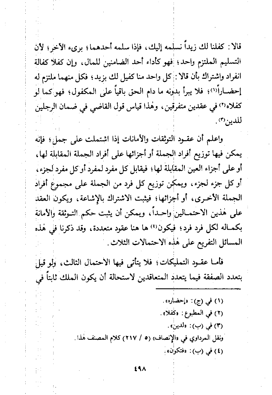 واعلم أن عقود التوثقات والأمانات إذا اشتملت على جمل؛ فإنه يمكن فيها توزيع أفراد الجملة أو أجزائها على أفراد الجملة المقابلة لها، أو على أجزاء العين المقابلة لها؛ فيقابل كل مفرد لمفرد أو كل مفرد لجزء، أو كل جزء لجزء، ويمكن توزيع كل فرد من الجملة على مجموع أفراد الجملة الأخرى، أو أجزائها؛ فيثبت الاشتراك بالإِشاعة، ويكون العقد على هذين الاحتمالين واحدًا، ويمكن أن يثبت حكم التوثقة والأمانة بكماله لكل فرد فرد؛ فيكون (¬4) ها هنا عقود متعددة، وقد ذكرنا في هذه المسائل التفريع على هذه الاحتمالات الثلاث.