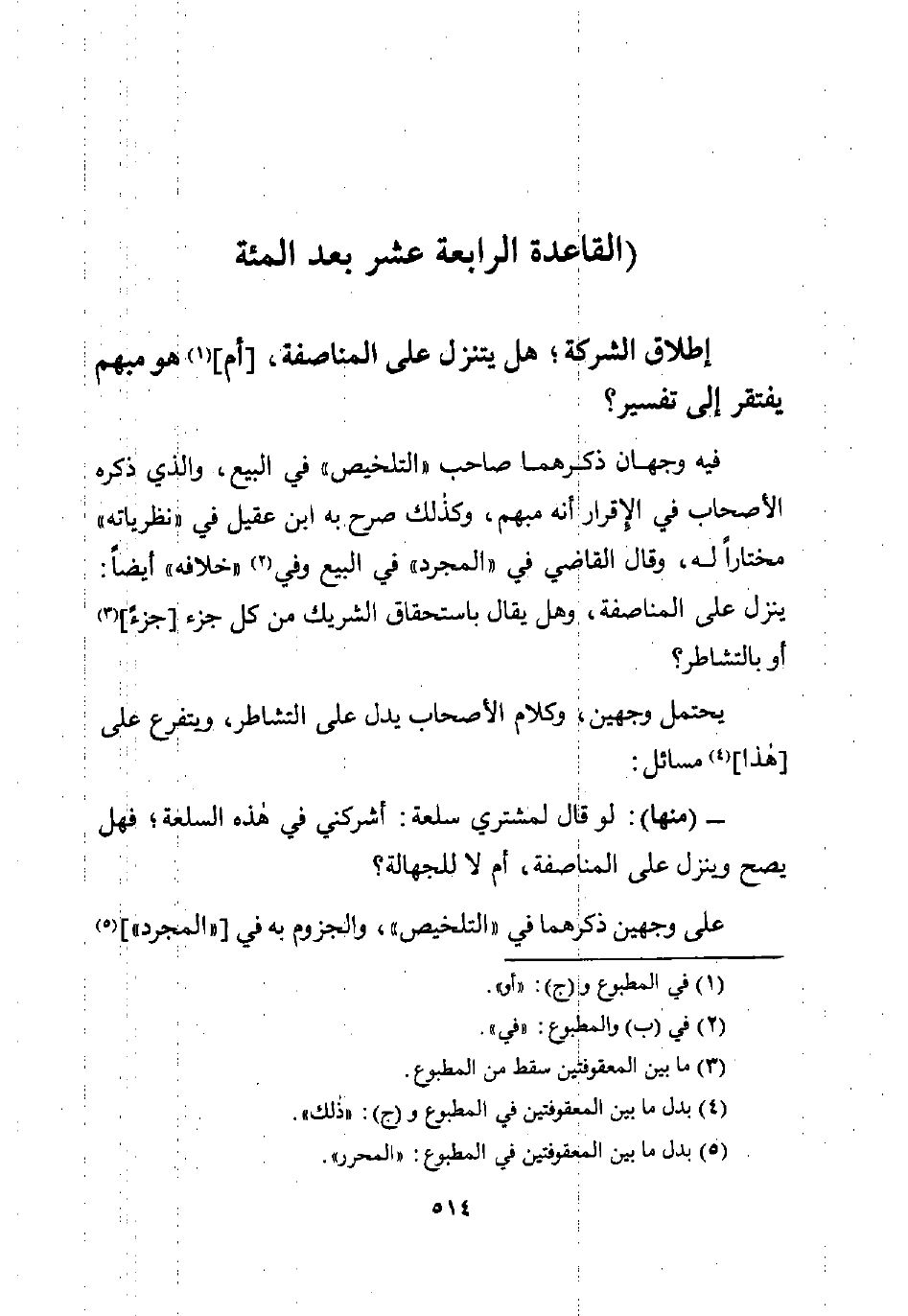 (القاعدة الرابعة عشر بعد المئة)
