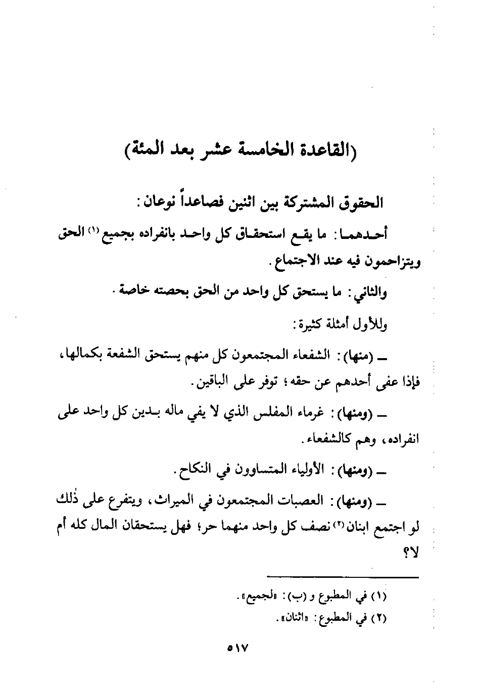 (القاعدة الخامسة عشر بعد المئة)